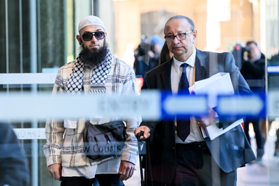 Muslim cleric, Wissam Haddad, also known as Abu Ousayd, (left) arrives at the Federal Court of Australia, in Sydney, Tuesday, June 10, 2025. Two leaders of the Executive Council of Australian Jewry Photo: Bianca De Marchi/AAP