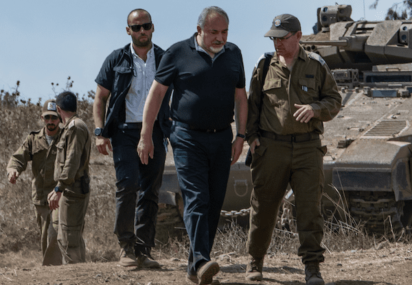 Then-Israeli Defense Minister Avigdor Lieberman observes an army drill in northern Israel, Aug. 7, 2018. Photo by Basel Awidat/Flash90.