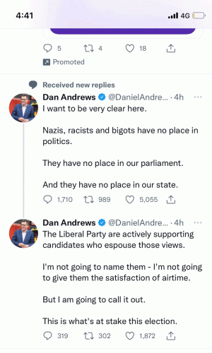 Premier Daniel Andrews wrote in a tweet, “Nazis, racists and bigots have no place in politics”.