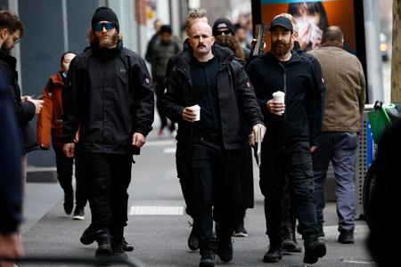Thomas Sewell went to court with half a dozen black-clad members of the National Socialist Network. (Con Chronis/AAP PHOTOS)