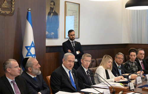 Israeli Prime Minister Benjamin Netanyahu at the weekly Cabinet meeting in Jerusalem, Jan. 15, 2023. Photo: Amos Ben-Gershom/GPO