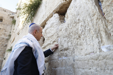 Prime Minister Benjamin Netanyahu, yesterday, placed a note in the Western Wall with the verse (Numbers 23:24) ‘A people that rises up as a lioness, and as a lion lifts himself up’.
