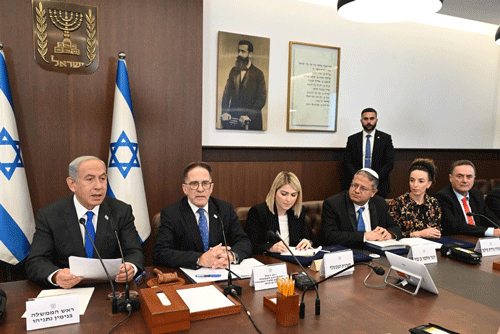 Prime Minister Benjamin Netanyahu (far left) leads a government meeting on Jan. 3, 2023. Photo by Government Press Office