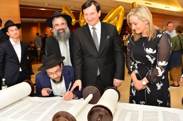 Harry Triguboff donated the Torahs in memory of his parents and in honour of his grandchildren.