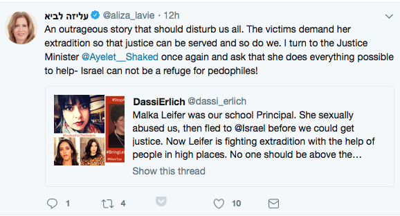 MK Aliza Lavie of the Yesh Atid party tweeted: