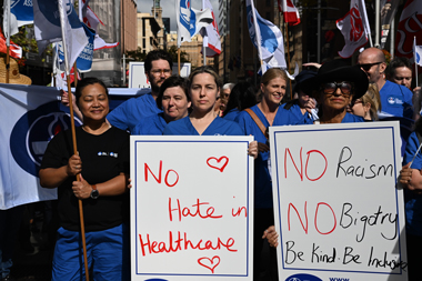 Emotional nurses have rallied against hate speech as Jewish leaders say some are wondering whether they need to hide their religion to get equitable healthcare.
