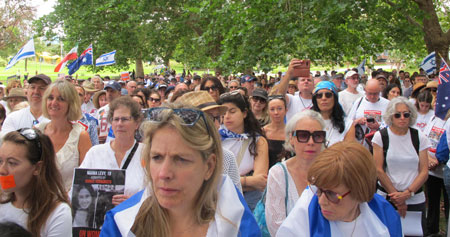 She addressed the rally: “I’m actually surprised by how emotional and overwhelming this all feels. I want to thank United with Israel because you took people to Canberra who had family members who were either killed on October 7 or had been kidnapped and for whom they were still awaiting their return. Their bravery in coming to speak to us in Canberra was extraordinary.