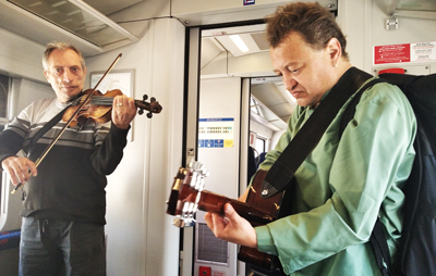 Where else in the world would one encounter a live instrumental serenade on a commuter train?