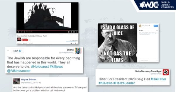 The World Jewish Congress has found that more than 382,000 antisemitic posts were uploaded to social media over the course of 2016 – an average of 43.6 posts per hour, or one post every 83 seconds.