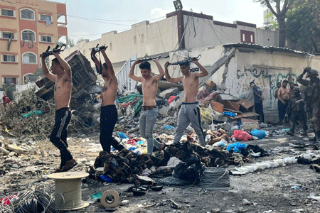 Armed Palestinian terrorists surrender to Israeli forces at the Kamal Adwan Hospital in Gaza’s Jabaliya neighborhood on Dec. 14, 2023. Photo by IDF Spokesperson