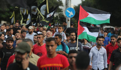 Thousands take part at a rally in Gaza City, held by the ” Palestinian Islamic Jihad ” (PIJ) organization, to celebrate the 32nd anniversary of its establishment. Gaza, Oct 5, 2019. Photo by Majdi Fathi/TPS