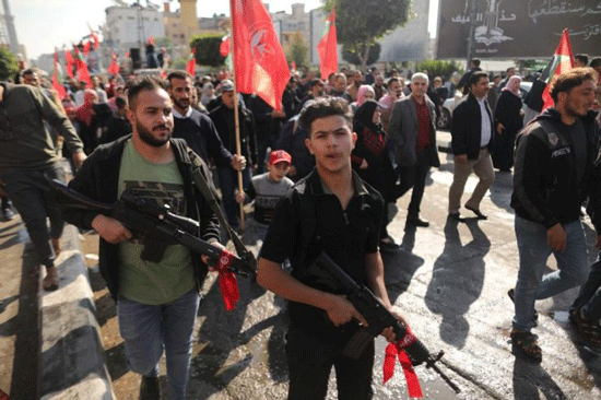 Armed men among the supporters who participated in a rally in Gaza City, marking the 52nd anniversary of the founding of the PFLP (Popular Front for the Liberation of Palestine). Gaza, Dec 7, 2019