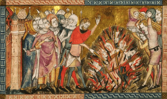 A medieval depiction of Jews being burned alive during Europe’s Black Plague. Source: Wikimedia Commons.