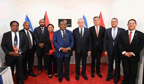 Israel’s Prime Minister Benjamin Netanyahu and Papua New Guinea Prime Minister James Marape joined Foreign Minister Eli Cohen and the mayor of Jerusalem, Moshe Lion, at the dedication of the Embassy of Papua New Guinea in Jerusalem.