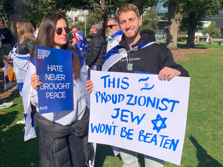The Australasian Union of Jewish Students held a peaceful rally today on campus at Melbourne University in support of Jewish students on campus and against antisemitism, bullying and intimidation.