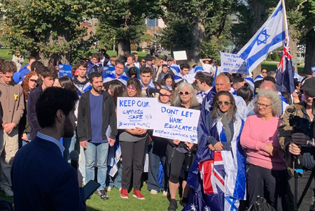 Several hundred students and community members, adorned with Australian and Israeli flags and carrying signs speaking against antisemitism, harassment and intimidation on campus, attended the rally. A large media presence should ensure that the rally is well-reported.