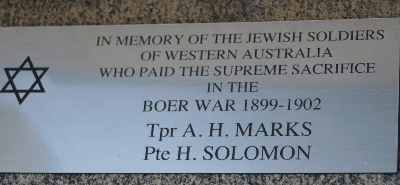 Also at the service, two Western Australian Jewish men who were killed in the Boer War in 1901 were honoured by having a plaque with their names unveiled on the memorial.