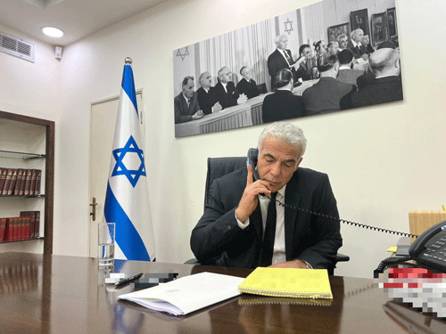 A statement by Lapid’s office said that the two “spoke at length about the negotiations on a nuclear agreement, and their shared commitment to stopping Iran’s progress towards a nuclear weapon.”