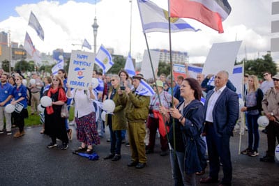 One Auckland Jewish community member in attendance, scientist Leonard Bloksberg confirmed on his Facebook page that there were up to 200 people in attendance to support Israel, freedom and peace.