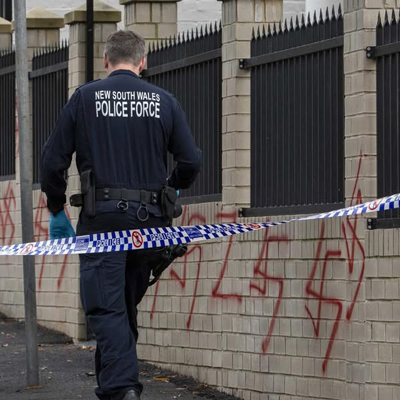 Newtown Synagogue, in Sydney’s inner west, was spray-painted with red Nazi swastikas and briefly set alight in the early hours of January 11.