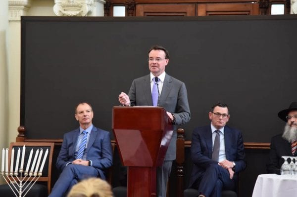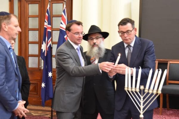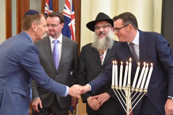 The Chabad of Melbourne CBD’s Rabbi Chaim Herzog told J-Wire: “We celebrated in true bipartisanship which included Premier Daniel Andrews and Liberal MP for Malvern and Leader of the Opposition Michael O’Brien lighting a candle together.