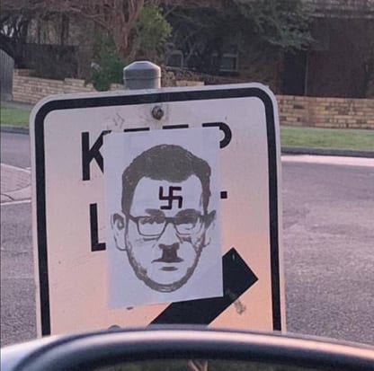 Vandals have pasted an image of Victorian premier Daniel Andrews with a swastika on his forehead and with a Hitler moustache on a road sign in the suburb of Highett.