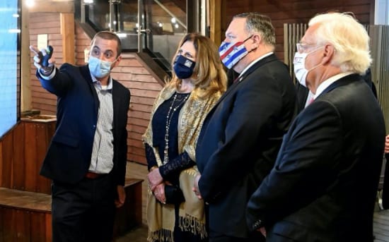 Pompeo visited the Psagot Winery in the Shaar Binyamin Commercial Center and the Qasr al-Yahud baptism site in the Jordan River Valley.