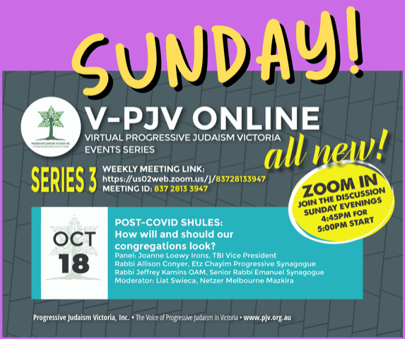 A virtual Progressive Judaism Victoria zoom broadcast.