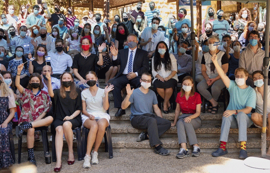 Yaakov Hagoel, acting chairman of the Jewish Agency for Israel Executive, with new Olim from 26 countries who recently joined the J.A.’s Ulpan Etzion in Jerusalem. Photo credit: Elad Brami