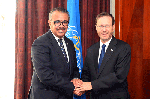 WHO Chairman Dr. Tedros Adhanom Ghebreyesus and President Isaac Herzog