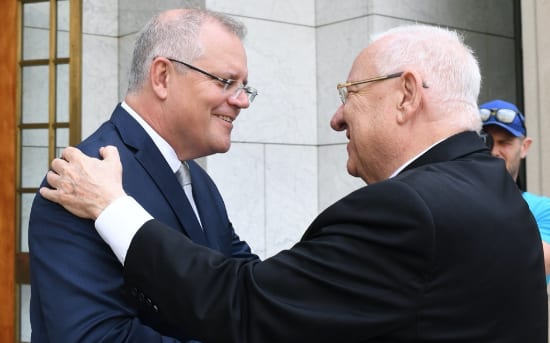 Scott Morrison greets President Rivlin in Canberra earlier this year Photo: Koby Gideon/GPO