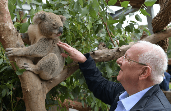 President Reuven (Ruvi) Rivlin has visited the wildlife hospital at Sydney’s Taronga Zoo in Sydney…and patted a koala.