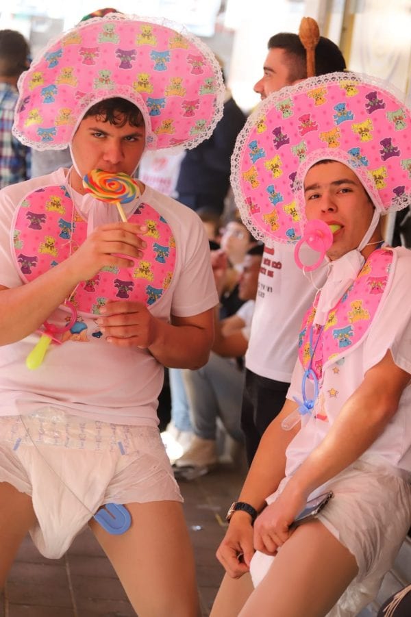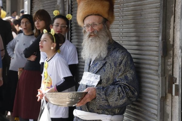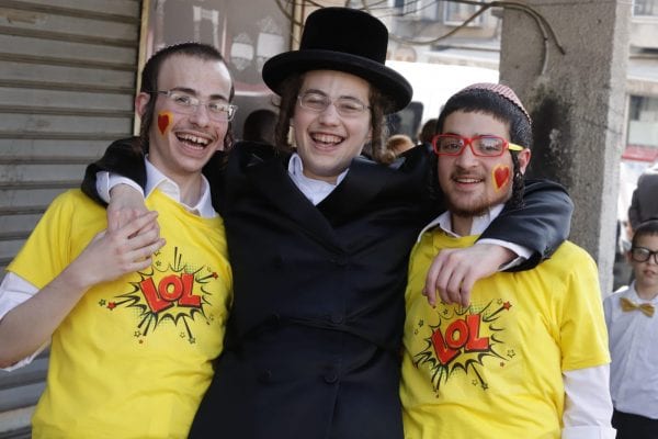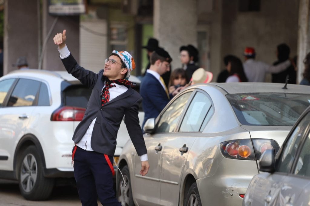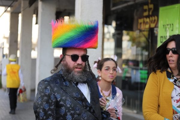 People celebrating the Jewish holiday of Purim in the streets of the city of Bnei Brak. Bnei Brak, Mar 21, 2019. Photo by Eitan Elhadez/TPS