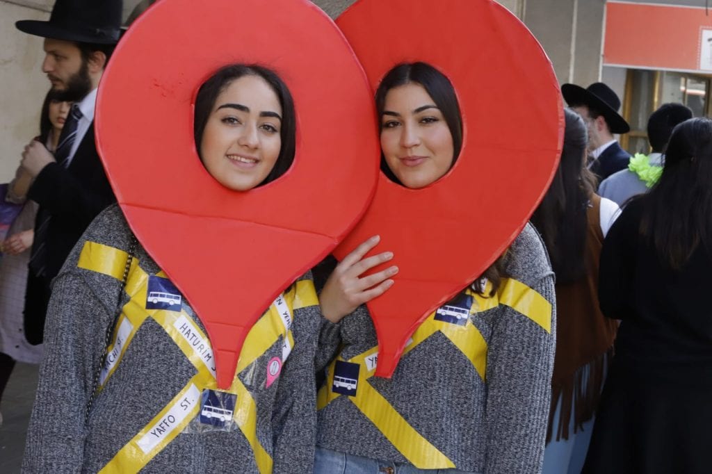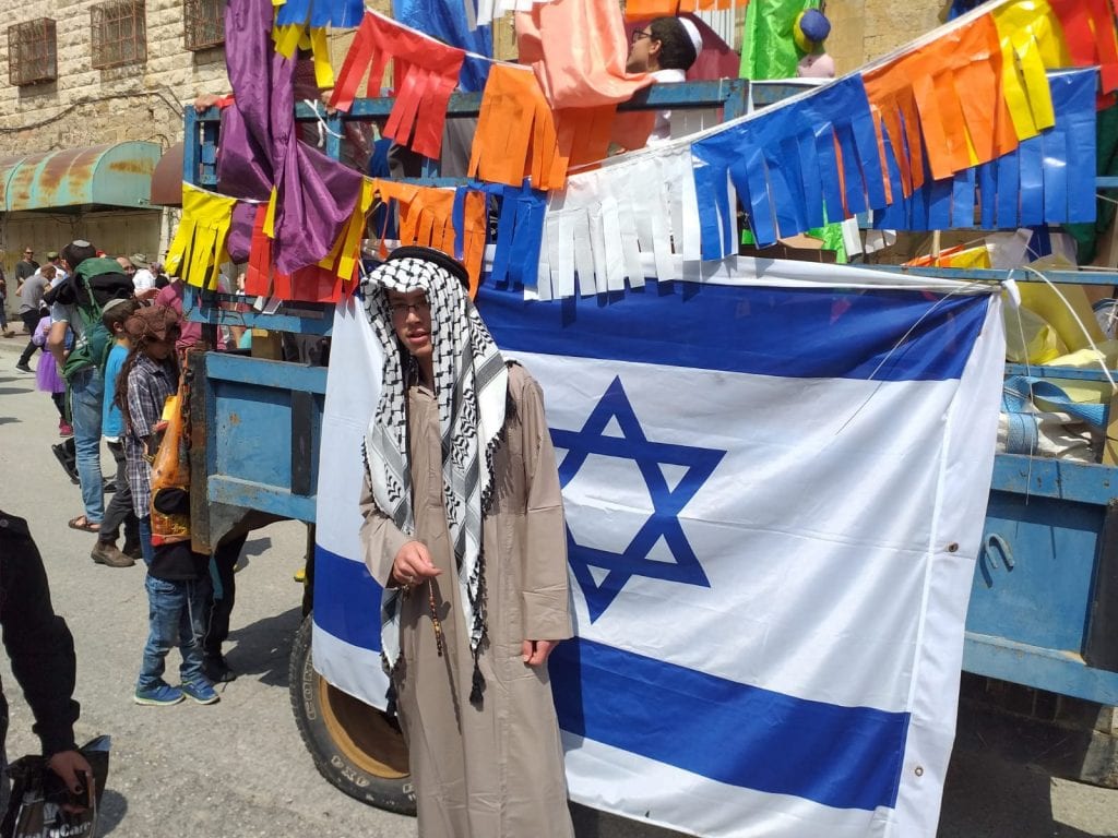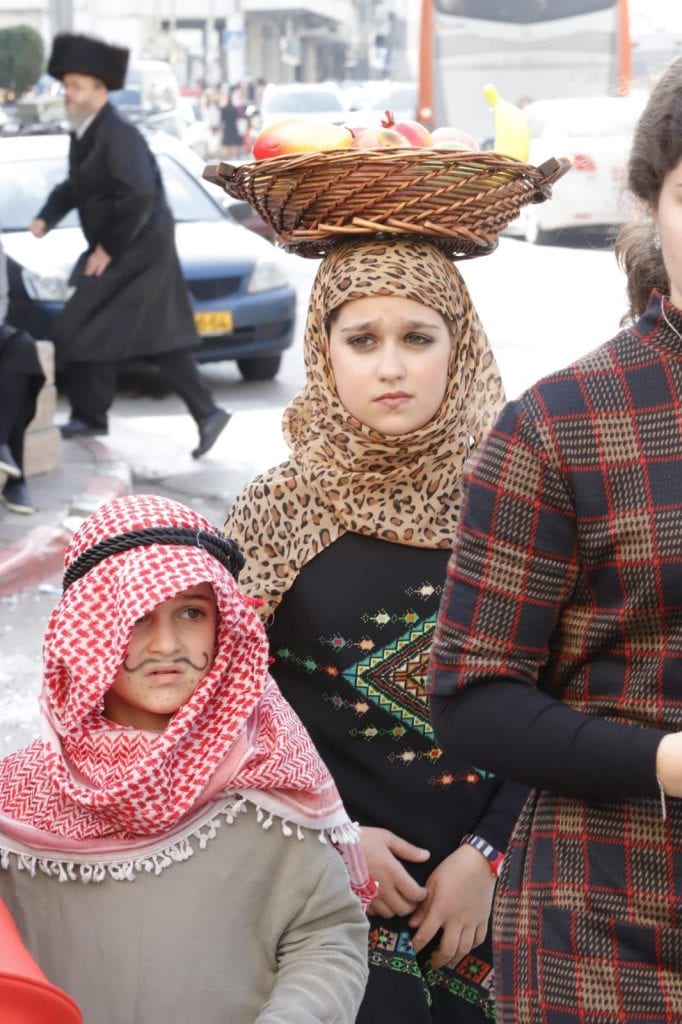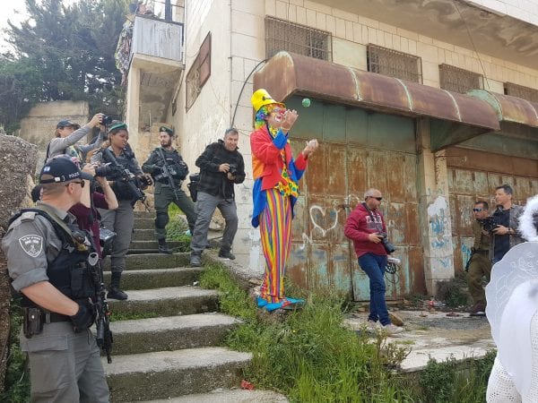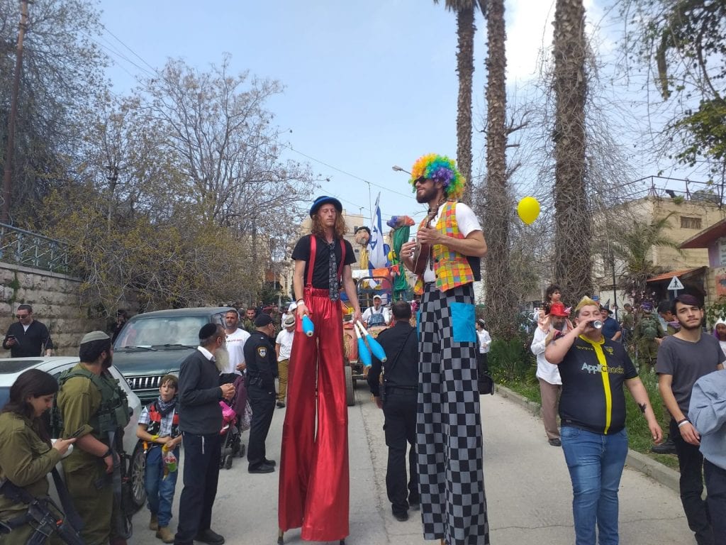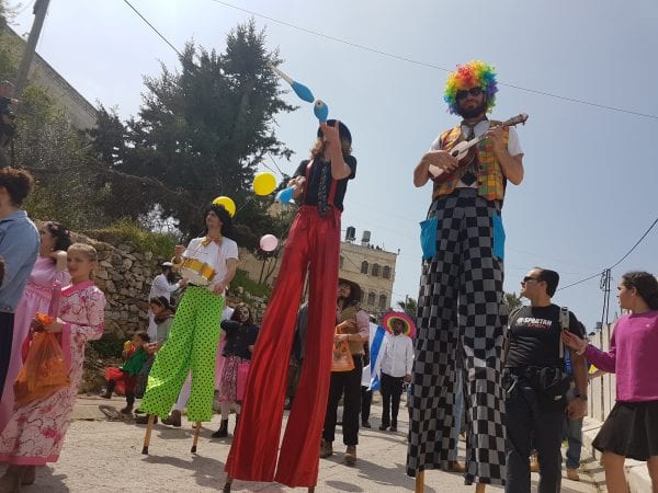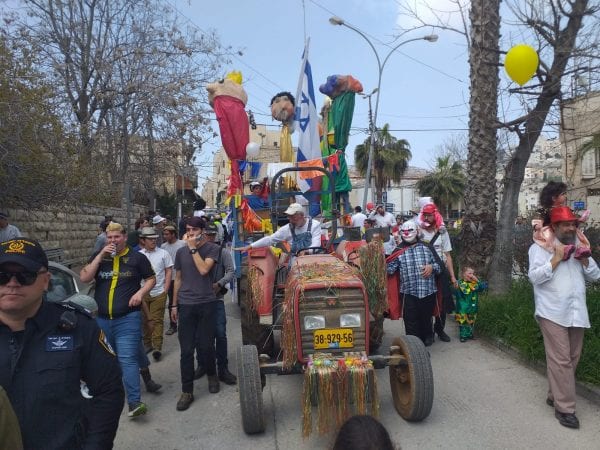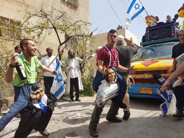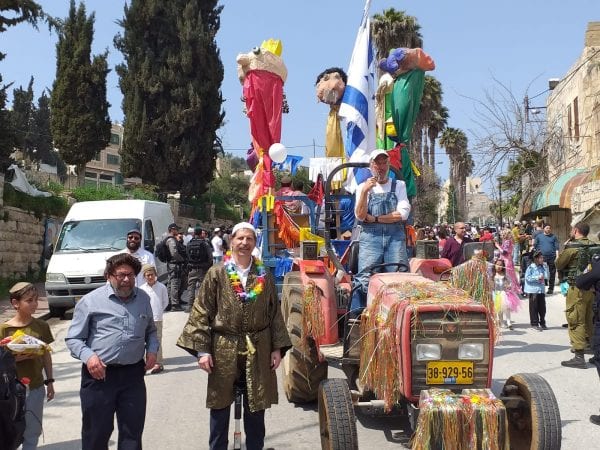 Adloyada – the humorous procession on the Jewish holiday of Purim, held in the city of Hebron, under tight security. Hebron, Mar 21, 2019. Photo by Tzipi Schlissel/TPS