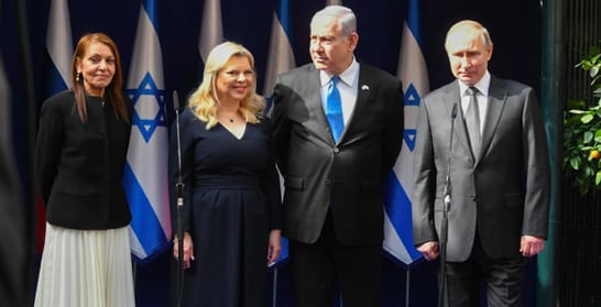 Israeli Prime Minister Benjamin Netanyahu, and his wife Sara, Yaffa Issachar (left) and Russian President Vladimir Putin, at the Prime Minister’s Residence in Jerusalem, on Jan. 23, 2020. Yaffa Issachar’s daughter, Naama, is serving a seven-and-half-year sentence in Russia on drug charges. Photo by Amos Ben Gershom/GPO.