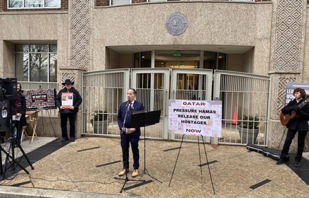 Rep. Jamie Raskin (D-Md.) speaks outside the Qatari embassy in Washington, D.C. at a gathering demanding the release of hostages on Jan. 24, 2024. Photo by Andrew Bernard.