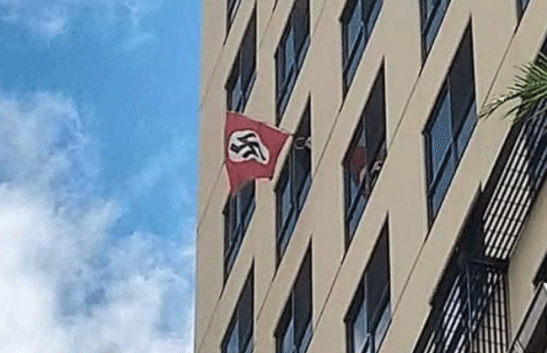 Police have seized a Nazi flag that was flown from an apartment window near a Brisbane synagogue. (PR HANDOUT IMAGE PHOTO)