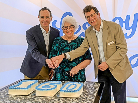 Queensland Jewish Board of Deputies President Jason Steinberg, community member Pamela Huppert, ECAJ President Daniel Aghion celebrate 160 years of Jewish life in Queensland. (supplied)