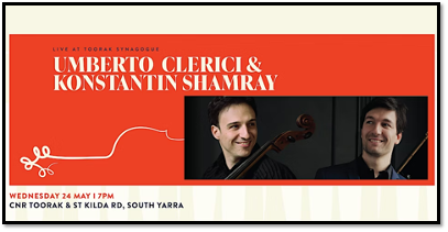 Toorak Synagogue is opening its doors to the public for this special concert featuring the music of Rachmaninov and Bruch performed by cellist Umberto Clerici and pianist Konstantin Shamray.