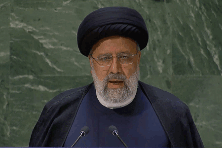 Iranian President Ebrahim Raisi speaks on Sept. 19, 2023 at the United Nations General Assembly in New York. Credit: UNGA/screenshot.