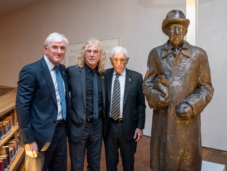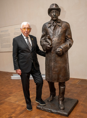 Sir Frank Lowy with the statue of his late father