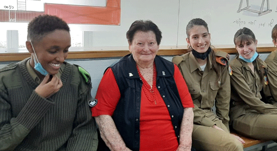 Tova Ofer sharing her story with soldiers at Beit HaPalmach. Photo courtesy the family