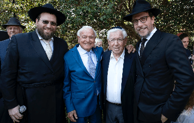 Newtown’s Rabbi Eli Feldman, synagogue’s president Wolfie Pizem, Sir Frank Lowy and the Central’s Rabbi Levi Wolff at the synagogue’s 100th anniversary