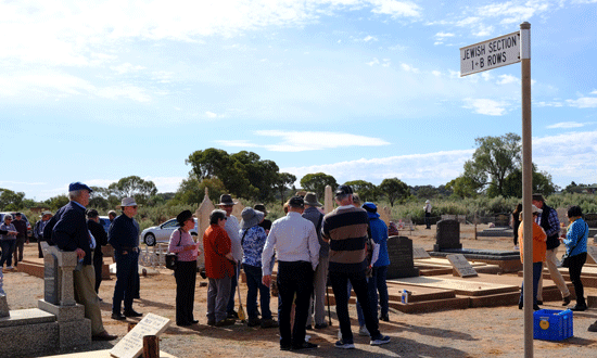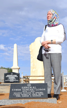On Sunday afternoon, the visitors gathered in the small Jewish section of the Broken Hill Cemetery for a moving consecration of the headstone of Simcha Shnukal (1876-1931) attended by his grand-daughter Anna. For some it was their first opportunity to place a stone on the graves of family members. Maurie and Vera Hasen brought nameplates for the 11 unmarked Jewish graves in the cemetery.