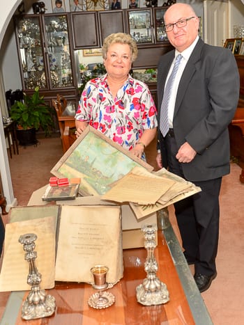 Eva and Alex told J-Wire: “We looked at these precious family memories which had survived 72 years in hiding and said ‘you’re home with the family again. You are in safe hands.” Eva Wittenberg added: “After I had bensched licht (lit the candles) and my husband John had made kiddush, I went to the box I had placed the items in (the original packaging from Slovakia was in a big mess).