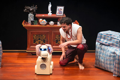 Ari Maza Long interacts with Robot Dog in the new MTC production Photo by Tiffany Garvie