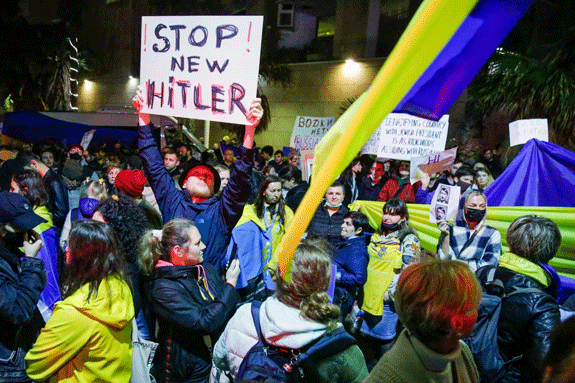 Russians, Ukrainians and Israelis protest invasion of Ukraine at Russian embassy in Tel Aviv
