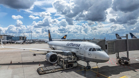 Lufthansa aircraft at ground ready for boarding during the reduced traffic situation due to corona at Frankfurt Airport, May 8, 2022. Credit: travelview/Shutterstock.