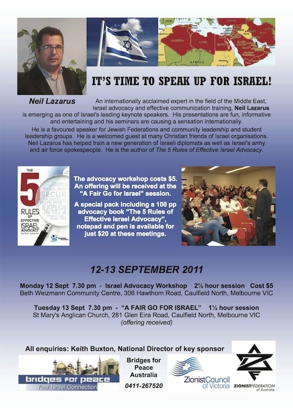 Sep-12 to Sep-14 Melbourne: Speak up for Israel