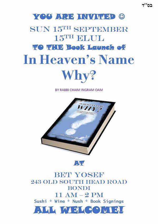 Rabbi Chaim Ingram invites the community to the launch of his newest book.